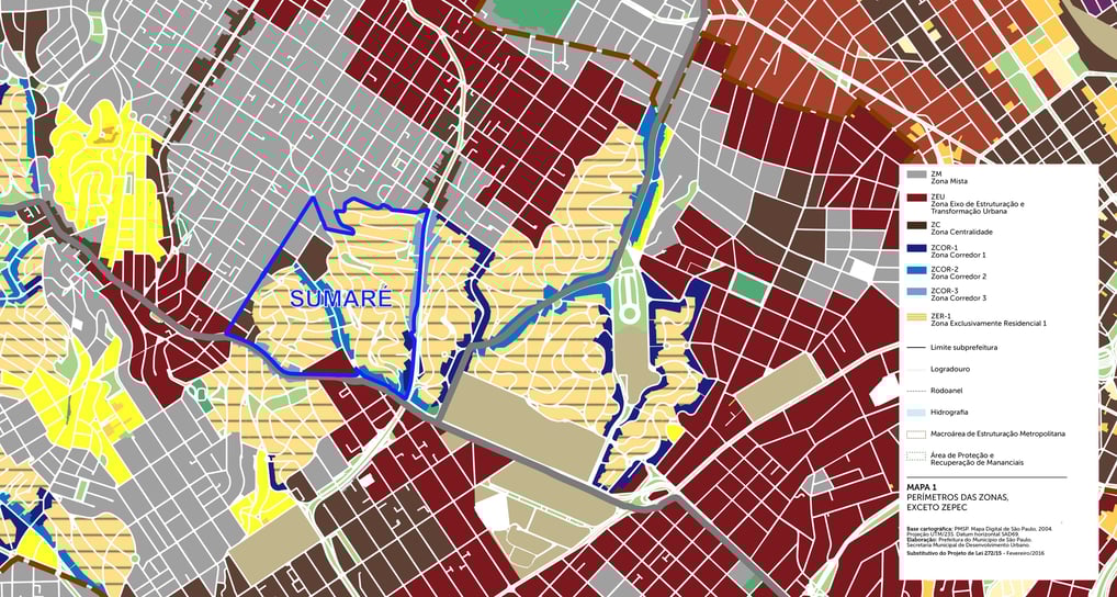 Imagem: Recorte do Sumaré no mapa das Zonas de Uso da cidade de São Paulo, 2015.