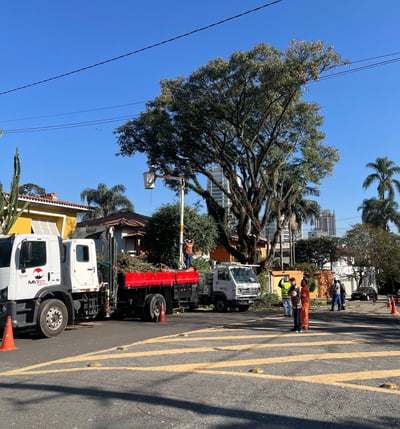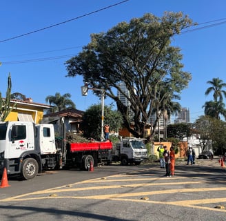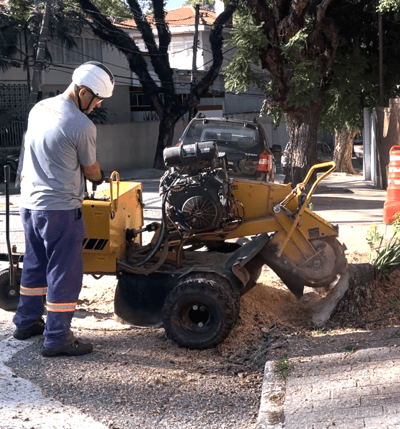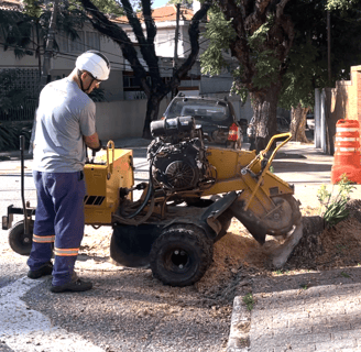 Poda de equilíbrio e destocagem de árvores em calçadas